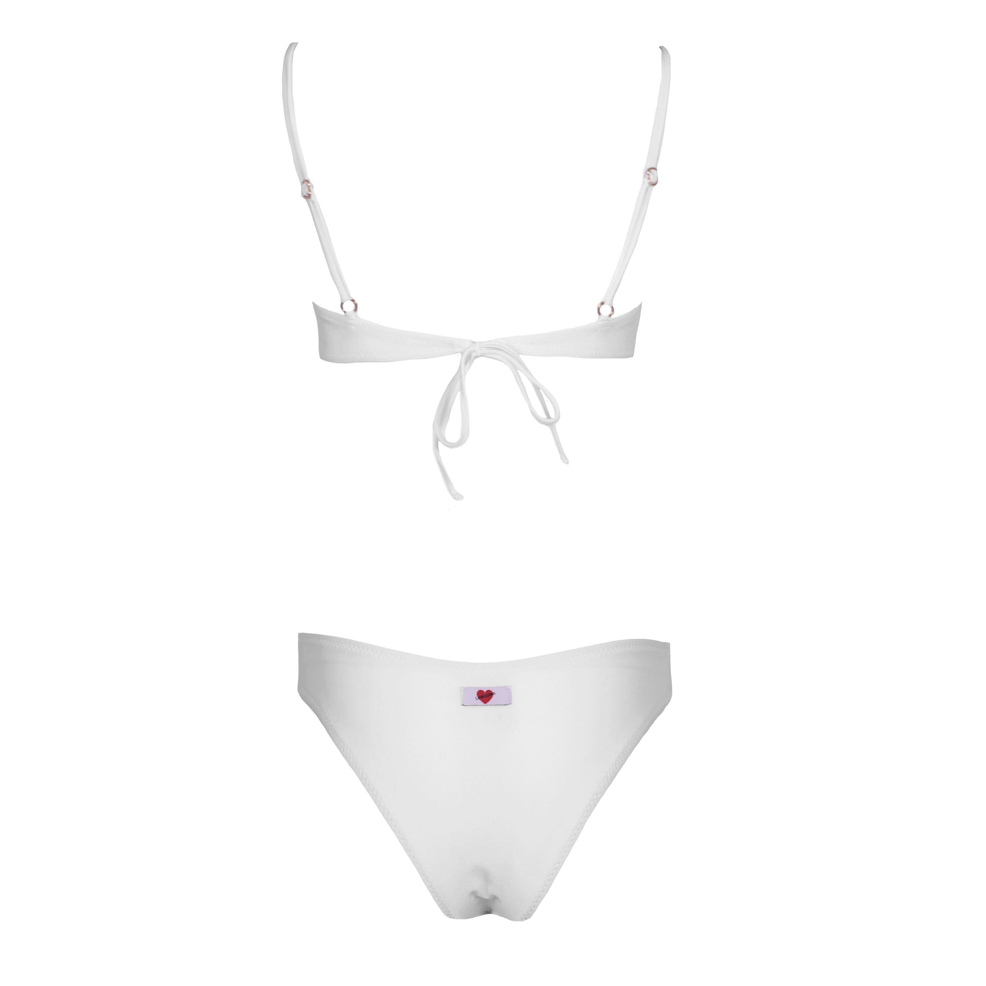 Balconcino tessuto seta, coppe estraibili, coppa drappeggiata, chiusura con fiocco alla schiena e applicazione di accessorio a centro seno.