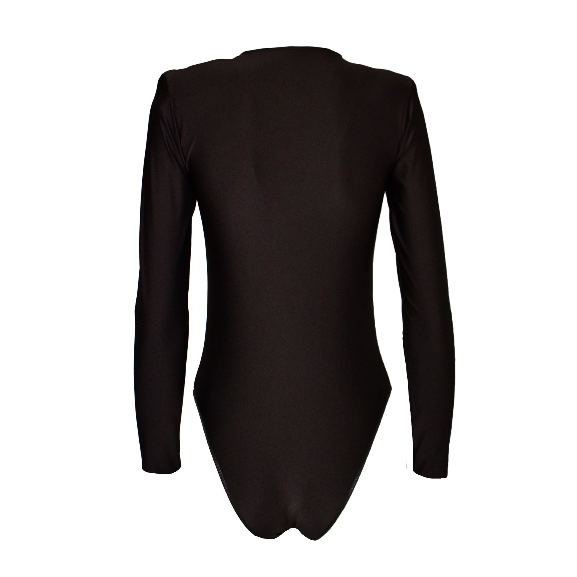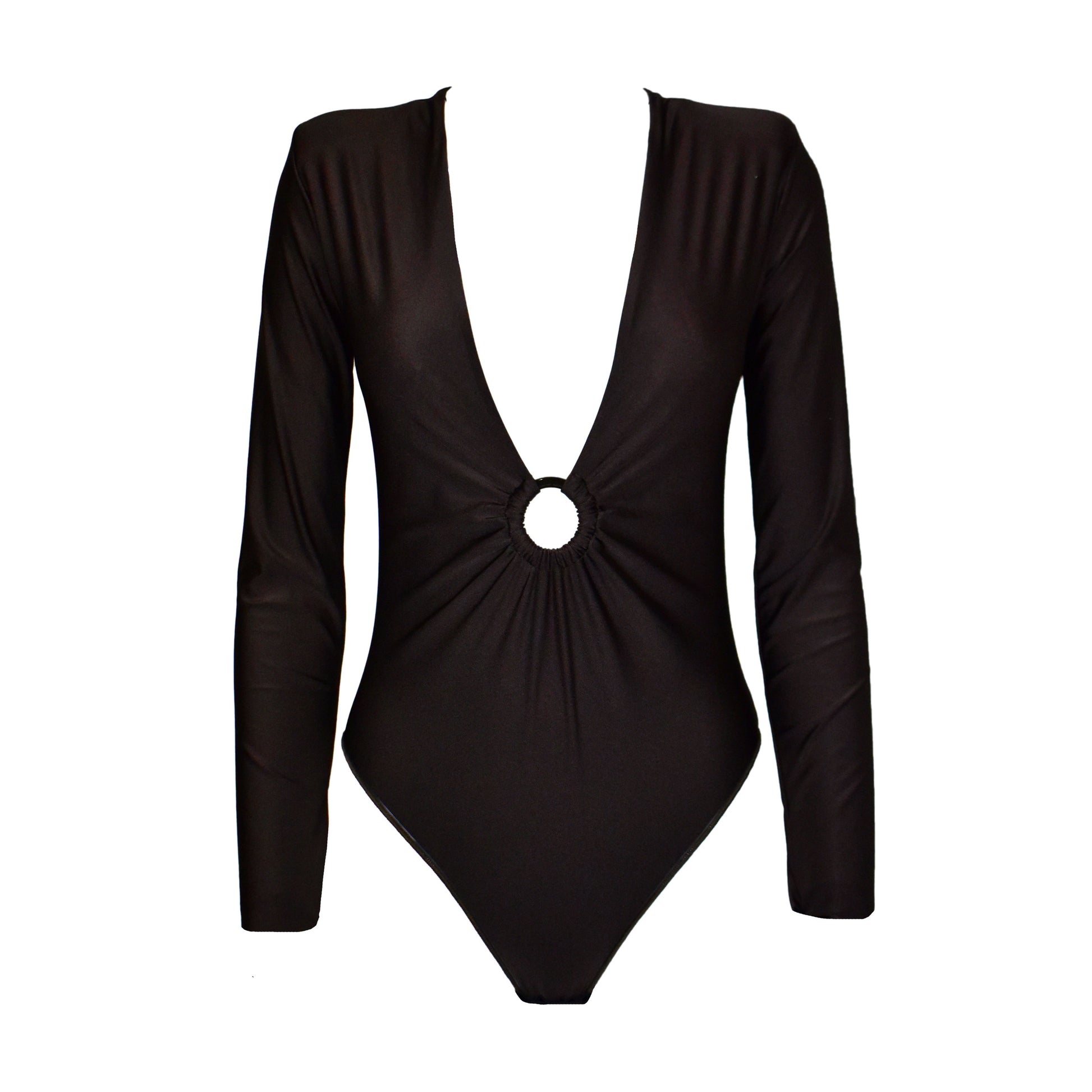 Body con scollatura profonda, anello centrale, spalline interne removibili e possibilità di inserimento coppe.