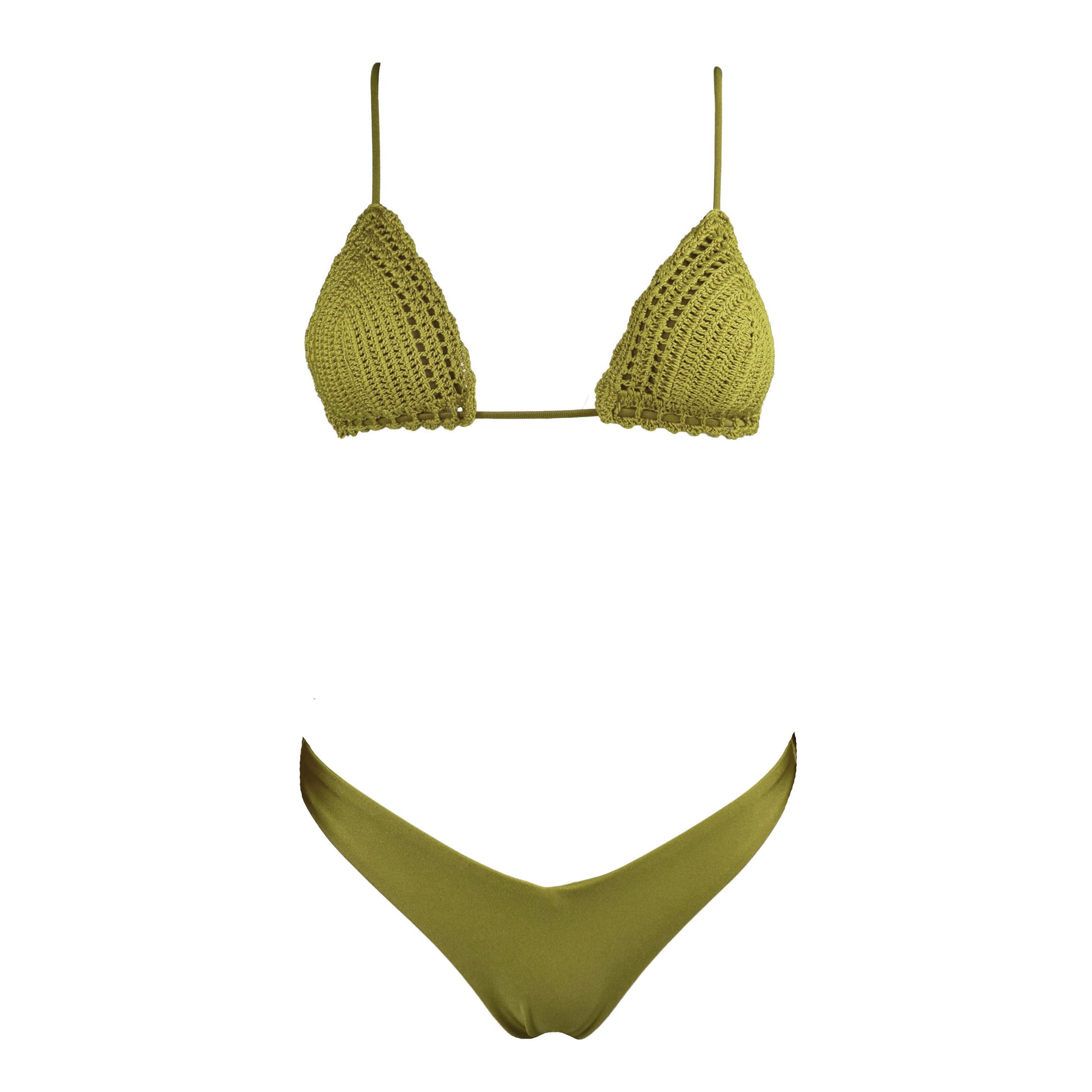 Triangolo tessuto crochet realizzato a mano, coppe estraibili, chiusura laccetti al collo e dietro la schiena.